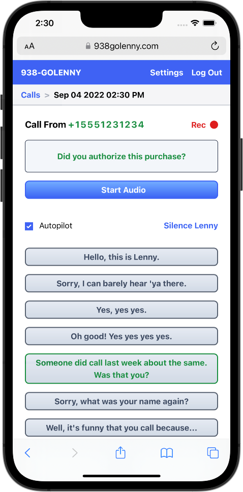 Automatically forward your unanswered calls to Lenny.